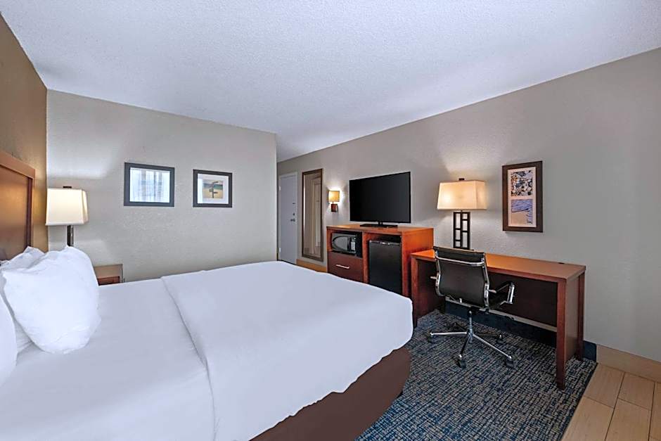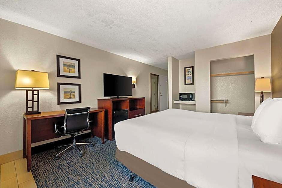 This room features a microwave, small refrigerator and cable TV.